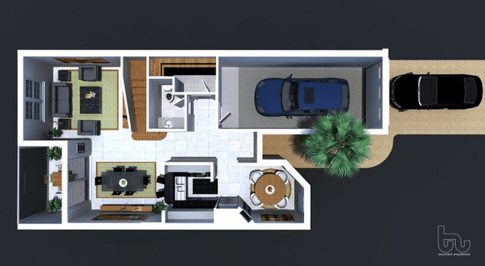 Planta baja: pisos de mármol italiano color crema marfil, baños con porcelanato italiano con piezas sanitarias color blanco con sus griferías, terrazas con piso de cemento estampado y con jardineras. Área de la cocina con todos los puntos eléctricos y tomas de agua, la persona diseña la cocina a su gusto y/o preferencia.