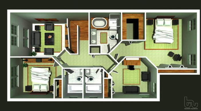 Planta alta: Pisos de madera flotante color wenge, baño principal en mármol italiano color crema marfil y piezas sanitarias en color blanco, puertas de closets (la persona diseña el cerramiento y la distribución a su gusto), escaleras con pasamano de vidrio templado y herrajes de acero inoxidable. Además, están equipadas con aire acondicionado central, calentador, todas las acometidas del directv, cantv, internet inalámbrico, gas directo en la cocina y en la terraza, tanque de agua de 600 mil lts para todo el conjunto residencial, sistemas de cámaras de seguridad accesible por internet y portón eléctrico para cada garaje de cada casa.